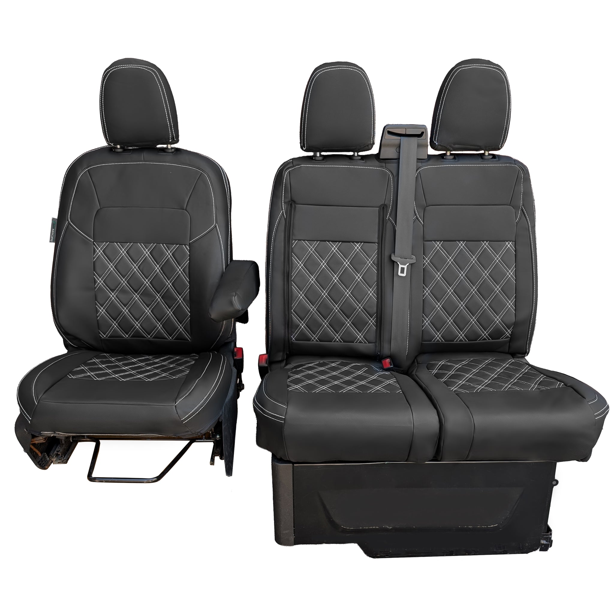 Front seats single and twin, with zip access to fold down tray, suitable for driver seats with 0, 1 or 2 armrests, airbag seams built into the driver and passenger seats. Allows access to all seat functions (under seat storage, access to seatbelts)