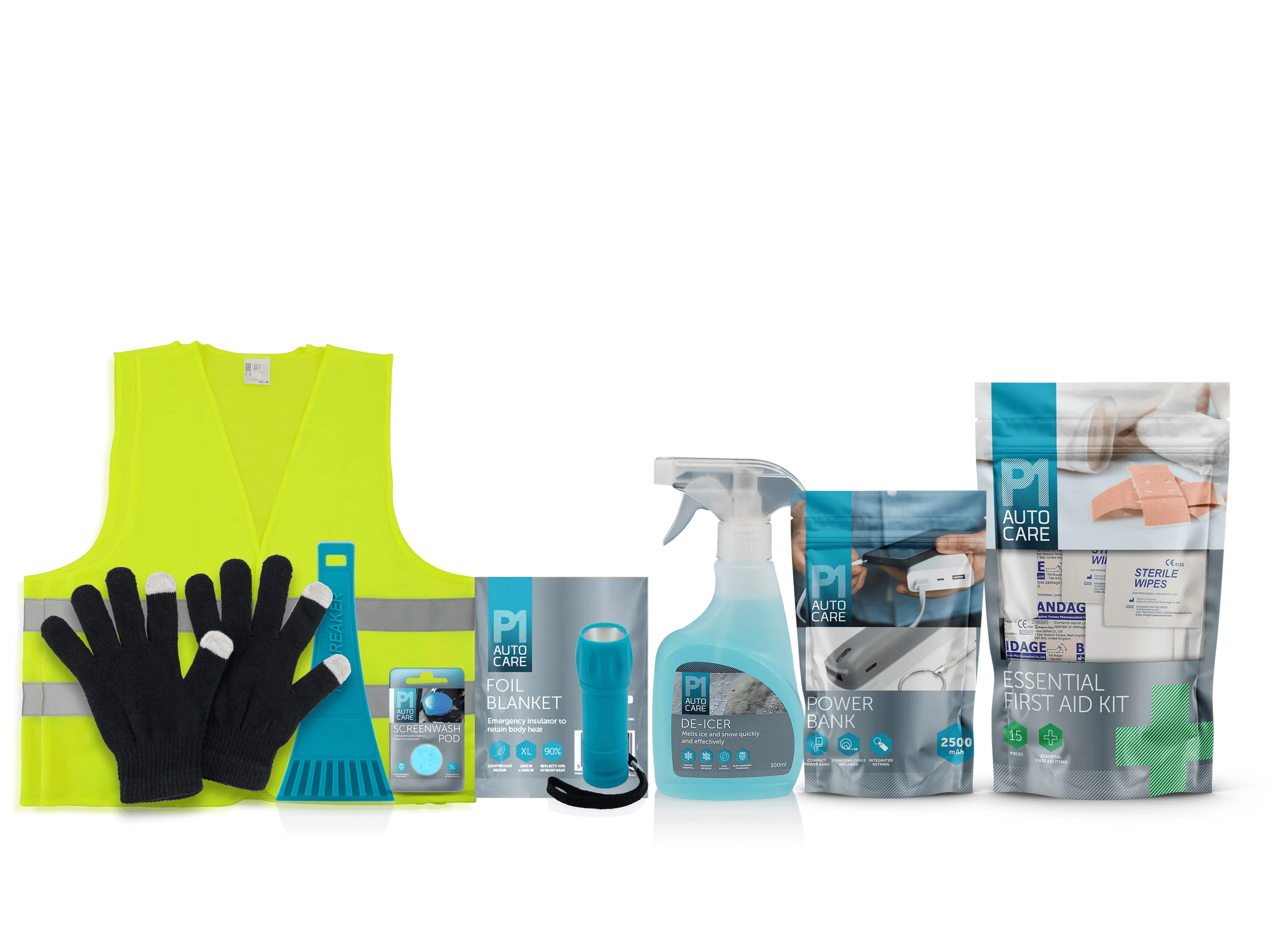 This winter driving kit contains essential items that help ensure you are well-prepared for driving in cold and dark conditions.